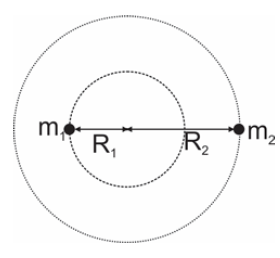 Dado que o centro das órbitas é também o centro de massa do sistema: